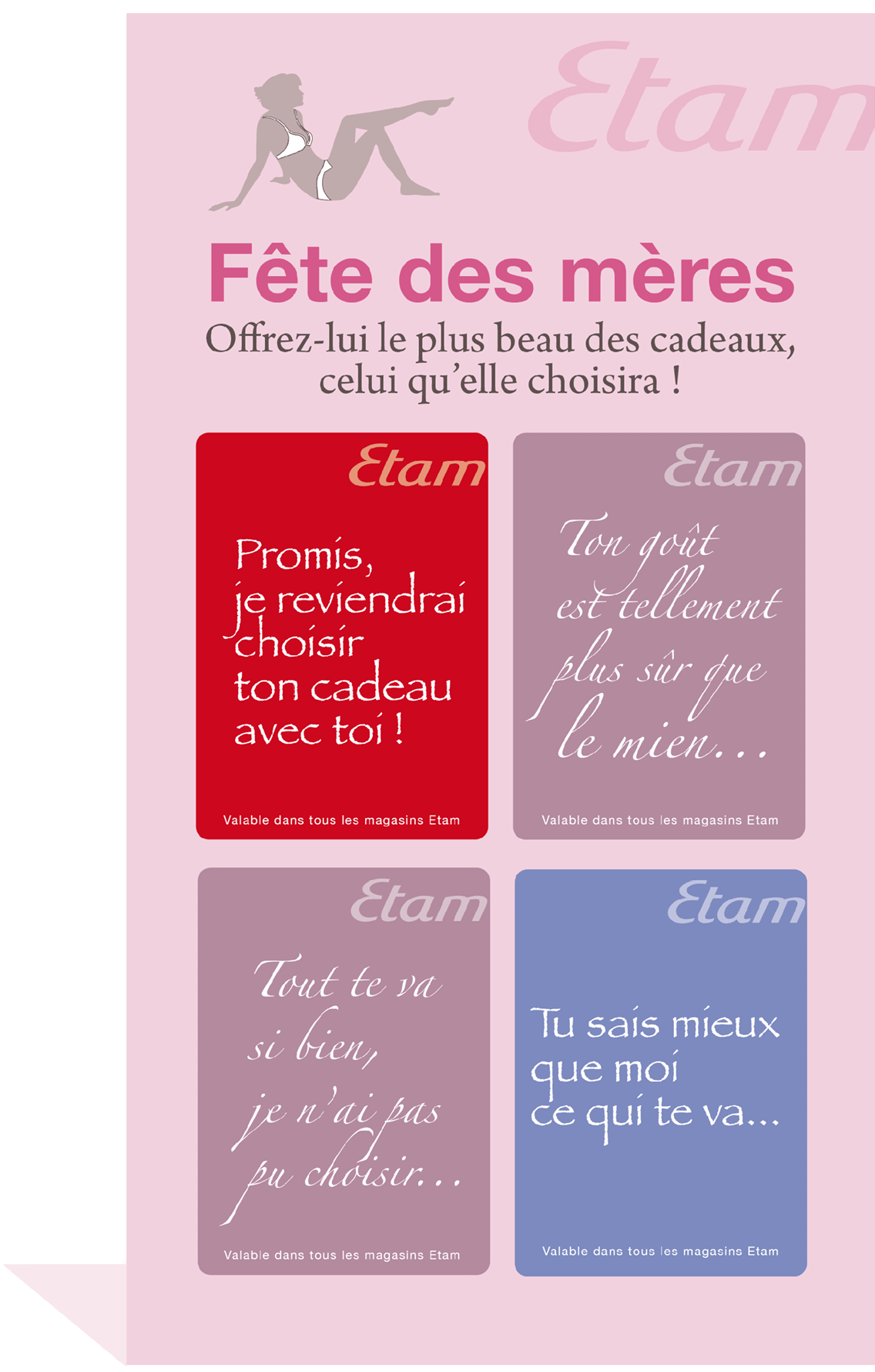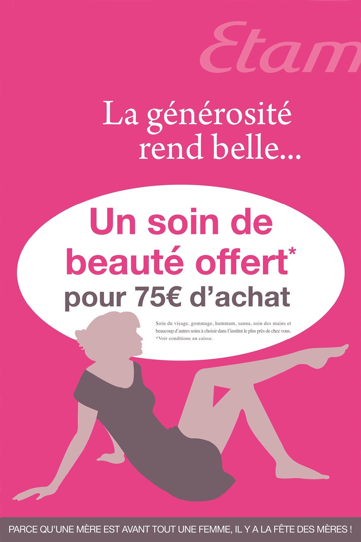 Tout au long de l’année Etam organise, dans ses magasins, des offres promotionnelles. Certaines d’entre elles font l’objet de communication, notamment la fête des mères, la Saint-Valentin et l’opération “culottes”.