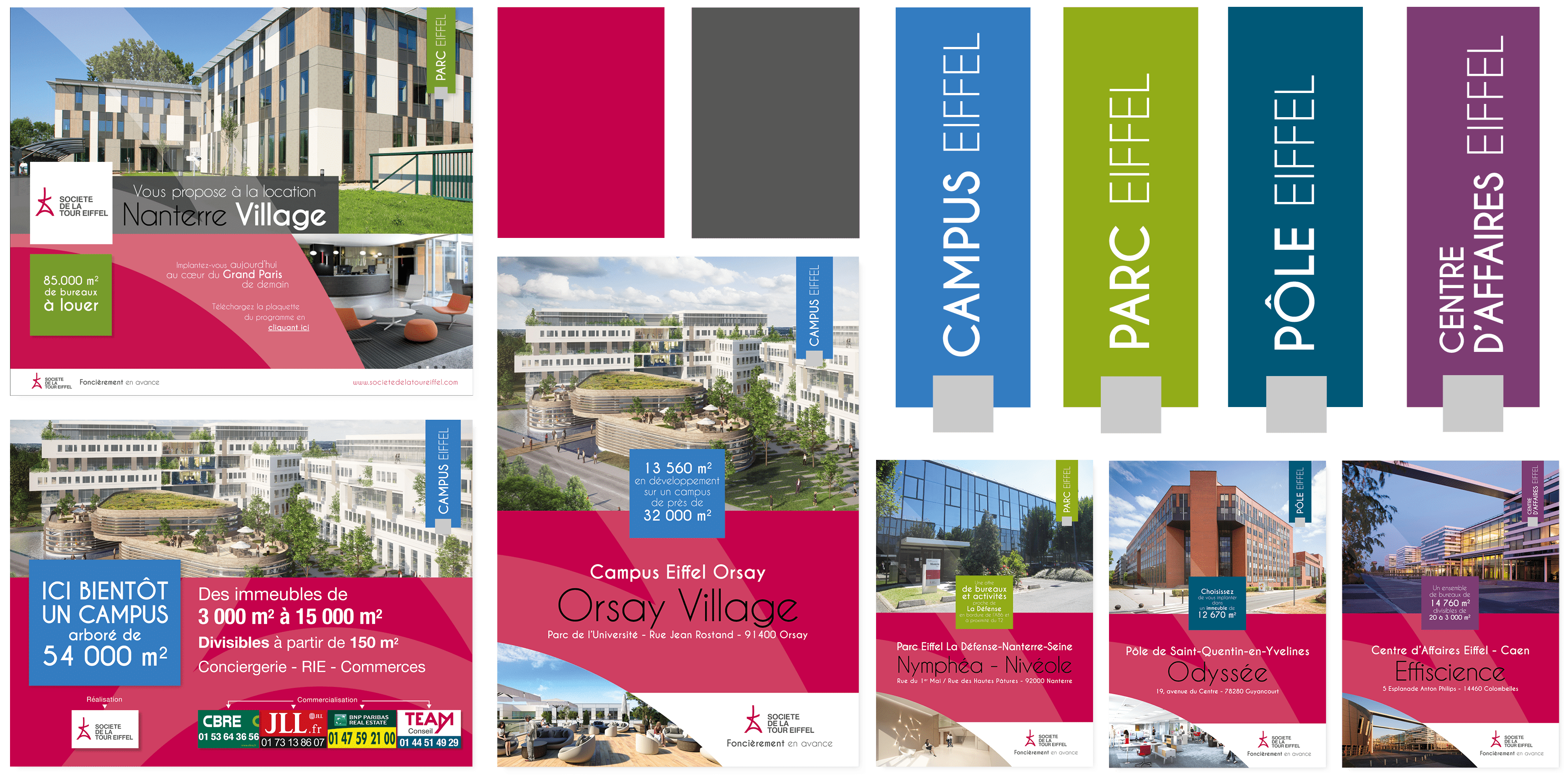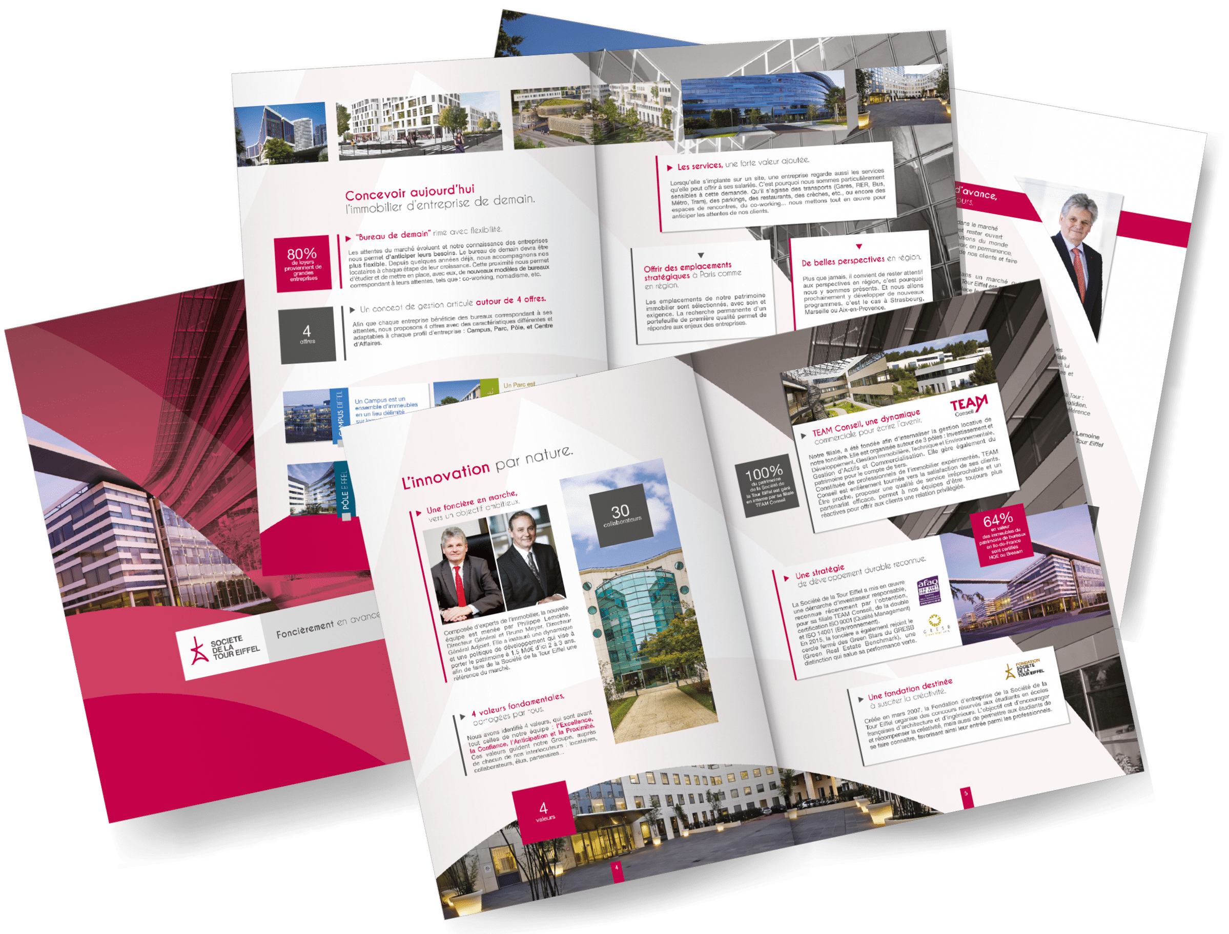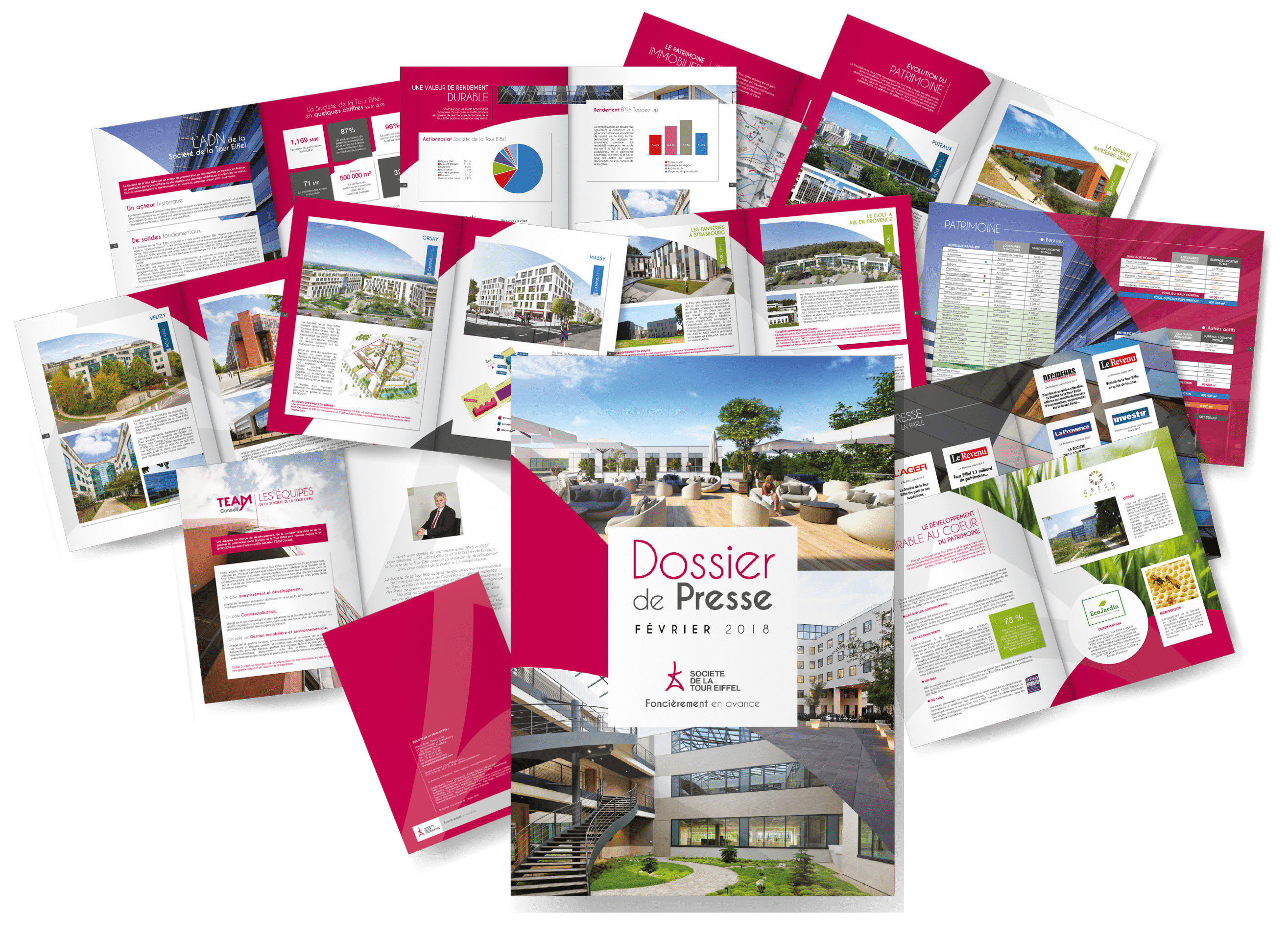 Société de la Tour Eiffel est une grande foncière immobilière dotée d’une société de commercialisation, TEAM Conseil. Plate ou Gazeuse a été chargé de créer un concept et une charte graphique évolutive pour le Groupe. Puis, de décliner cela sur tous les outils de communication nécessaires.